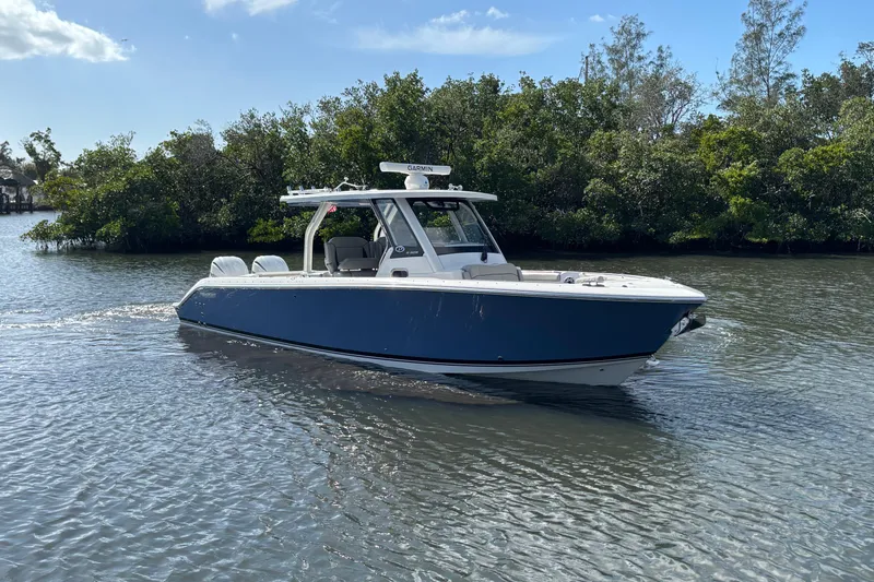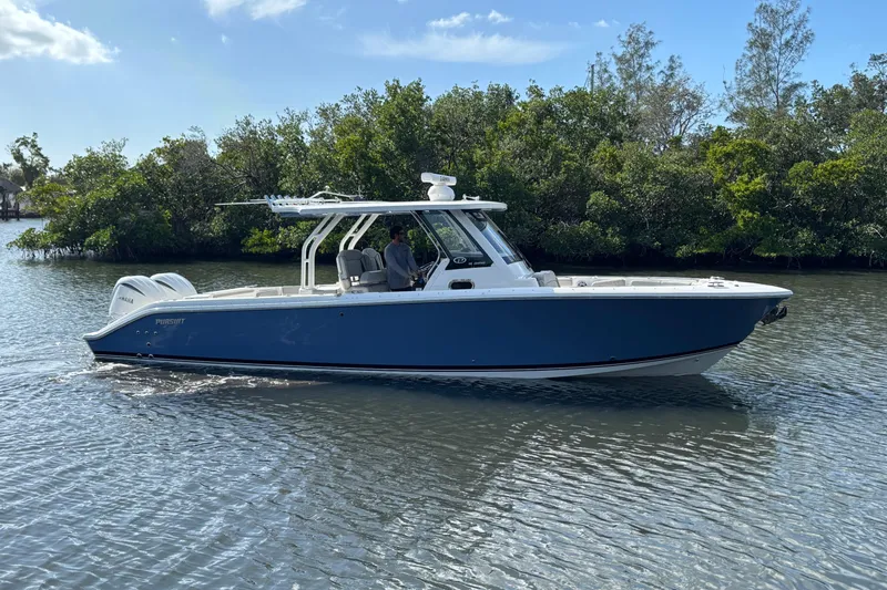 Introducing the stunning 2023 Pursuit S 328 Sport, a remarkable center console boat that combines performance and elegance. With an overall length of 34'6" and a generous 10'10" beam, this vessel boasts a sleek fiberglass hull designed in a deep vee shape, ensuring smooth navigation through various water conditions. Powered by twin Yamaha F300 outboard engines, each delivering an impressive 300 horsepower, this boat promises exhilarating speed and reliability, with only 80 hours of use. The electric windlass enhances convenience, making anchoring effortless. Designed for comfort, the Pursuit S 328 Sport features a well-appointed head, ensuring a pleasant experience for all aboard. Its thoughtful layout and modern amenities make it perfect for both leisurely cruises and adventurous outings. Experience the perfect blend of style and functionality with this exceptional boat, ready to elevate your time on the water. Call today to arrange your showing onboard.