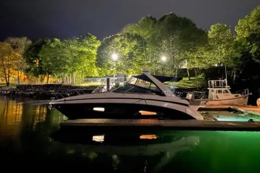 One of the best weekend boats available This boat is very well thought out from bow to stern. The Regal 32 express offers planing speeds up to 40mph and agility on the water that makes it fun to run and great to cruise. A king size bed aft, a near queen equivalent forward in the bow, and 1-2 more on the L shaped seating that converts to mid birth in the salon. TV to entertain after hours. The galley has a 2 burner cooktop, microwave, and refrigerator/freezer combo to feed your guests for the weekend. A full head with electric vacu-flush toilet and a hot shower, great for freshening up after a day in the sun.