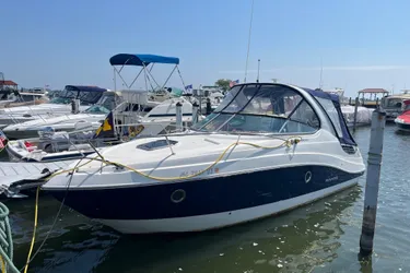 This freshwater vessel features a Mercruiser 8.2 Liter MAG (380 hp), with only 120 hrs. Bow Thruster, A/C-Heat, Windlass, Simrad GPS/Chartplotter, Raymarine VHF, Premium Stereo system with Bluetooth audio, Camper Top with screens, Bow sun pads, and much more!