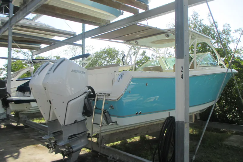 Powered with a pair of Mercury V8 Verado 300s with factory warranty through February 2026 and only 170 original hours!