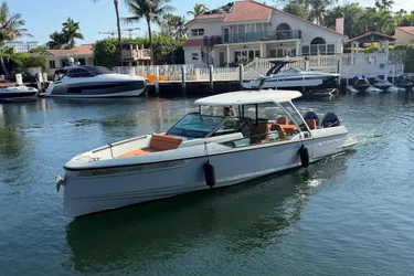 This example is powered by twin Mercury 300HP outboards with approximately 180 hours and is available for immediate viewing. Contact the listing broker for additional information or to schedule a showing.