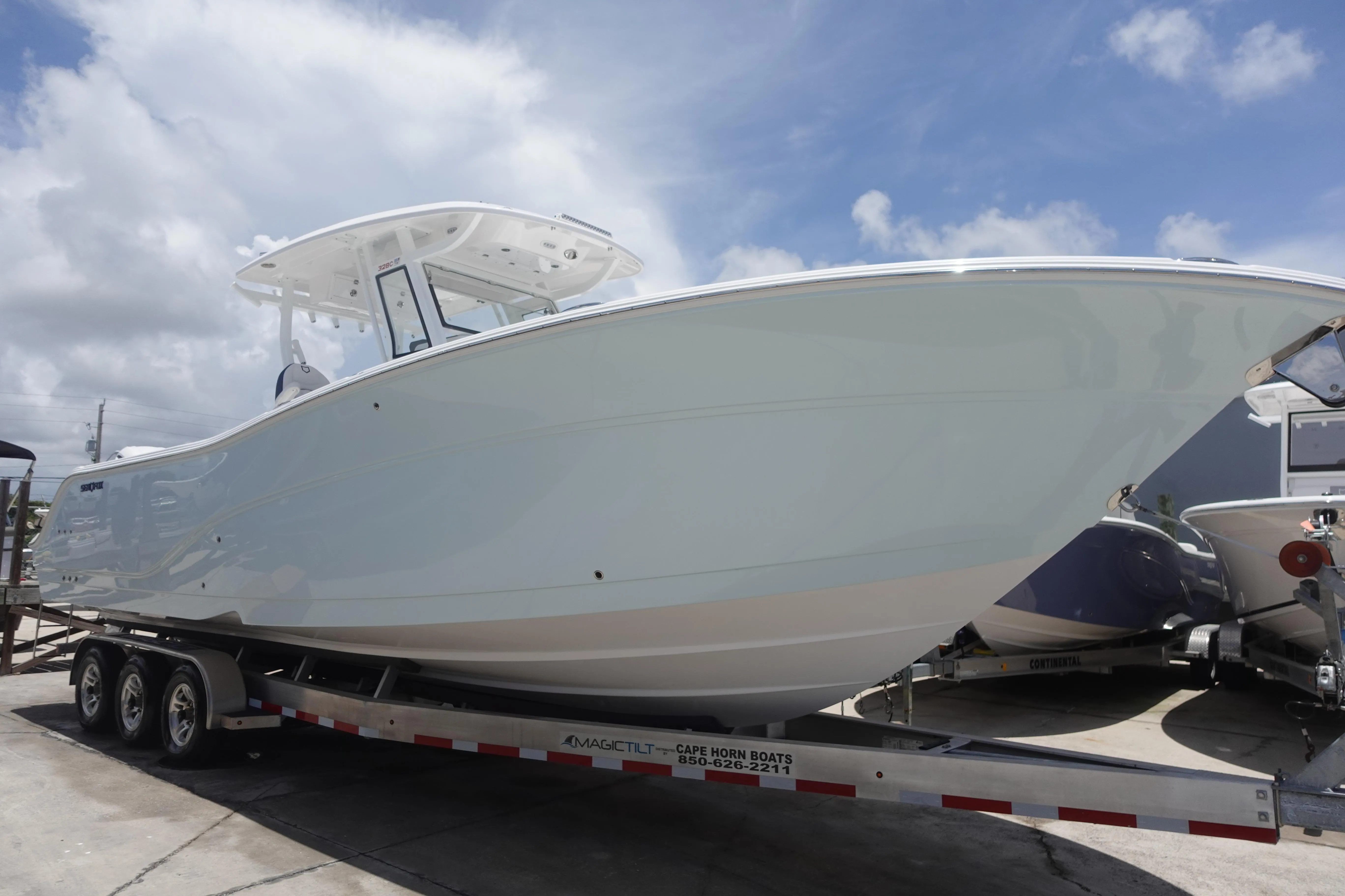 Here at Boat Kings we have a beautiful Sea Fox 328 Commander that has just come in! This boat is loaded with options and is turn key! Equipped with brand new Yamaha 350 V6 Four Strokes, and it comes with warranty! This boat has so many features and is a must see in person. Some of the features are: Windlass Anchor w switches, Full JL Audio Sound System with Head Unit and Subwoofer, LED Tech Package w underwater lights, mood lights, power cycle lights, Dual Garmin Touchscreens w transducer, AC in console, macerated fishboxes, Dual Livewells, Removable cushions with forward seating and ample storage throughout, Full AC in console, and Much much more!!!!!! Feel free to reach out to us or come into our shop and check us out. We are located in Pompano Beach and we are happy to help!