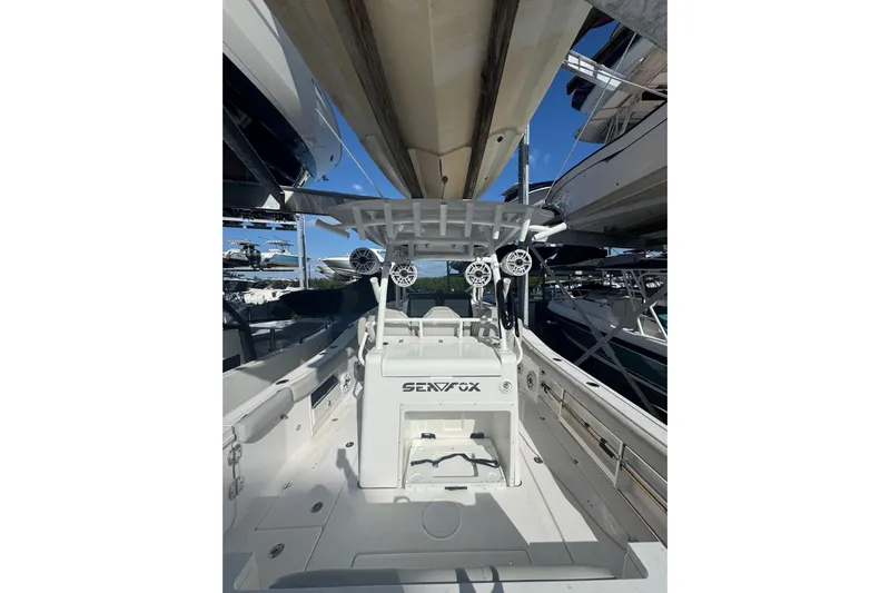 The 328 Commander was introduced in 2017 as the largest model in the Sea Fox fleet. This high-performing vessel delivers excellent value compared to many center consoles of similar size. Its forward-seating layout is perfect for cruising and entertaining, featuring a two-person lounge on the forward console with a spacious storage compartment underneath.