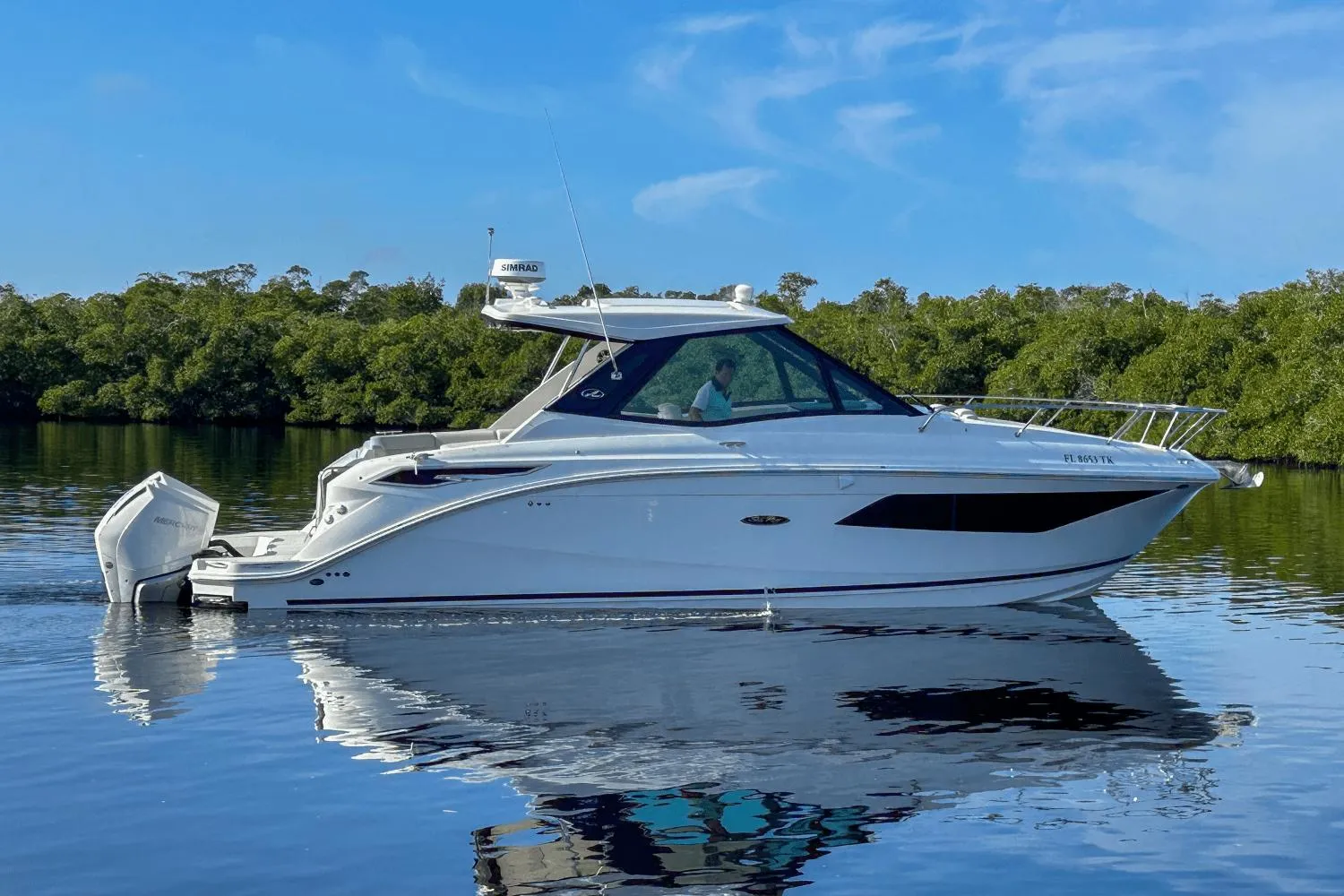 New arrival! 2023 Sea Ray 320 Outboard Coupe - Triple White Mercury V8 JPO 250 HP's with only 70 hours (12/2024) - Super Clean Condition - Well optioned out and a Must See!