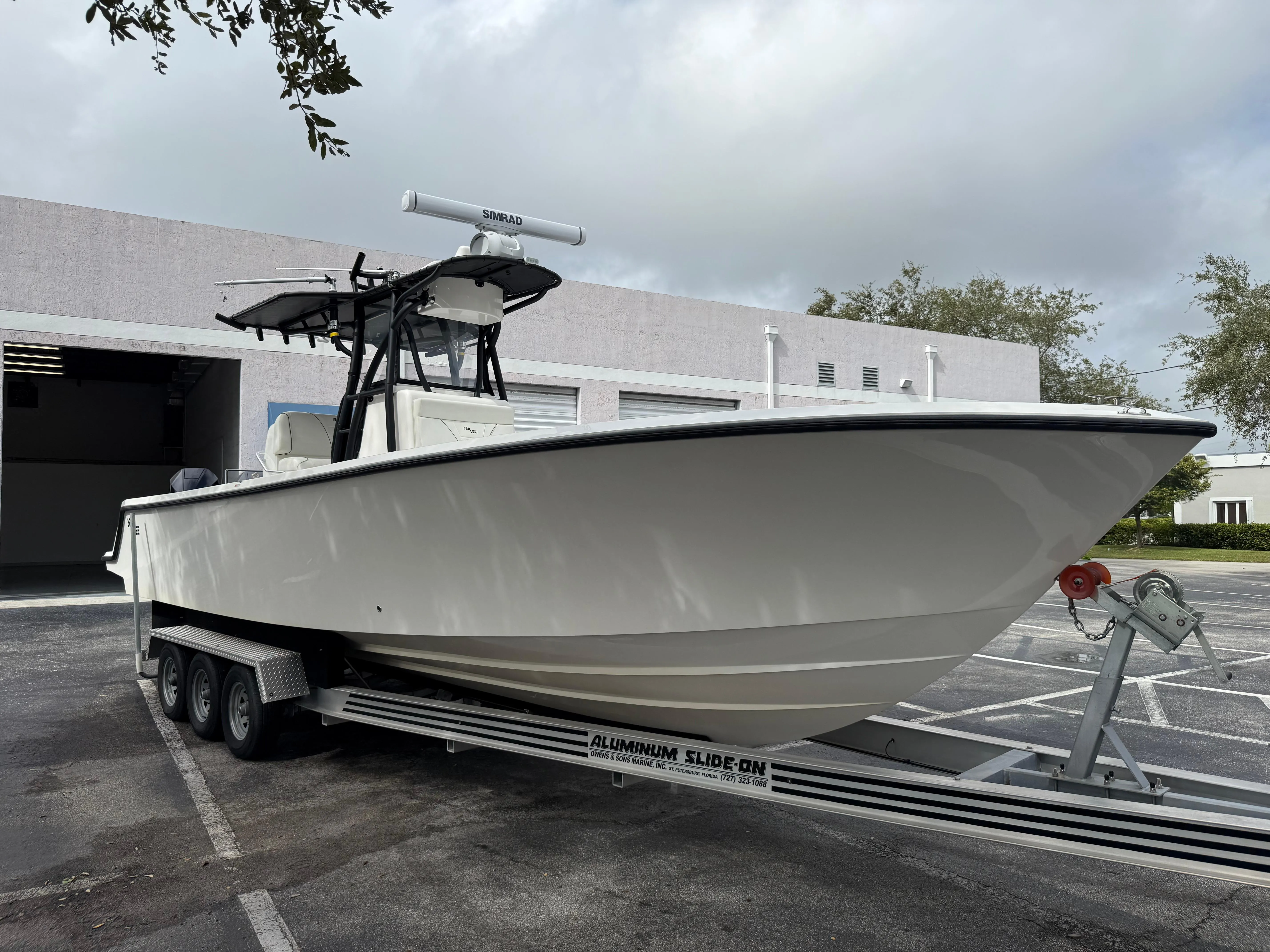 This Open Fisherman 320B is built for performance and durability, powered by twin 300 HP V8 Mercury four-stroke engines in a sleek black finish. With a five-year Gold Mercury warranty, this vessel ensures peace of mind on every journey. Outfitted with a range of premium features, from extensive rod storage to advanced electronics, this boat is perfectly equipped for both serious fishing and comfortable cruising.