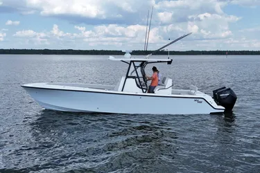 This custom 2023 SeaVee 320 is finished in a sleek Whisper Gray hull with black powder-coated pipework and a fiberglass hardtop outfitted with Gemlux carbon fiber outriggers and a Rigid 30” LED light bar. Designed for serious anglers, it features upgraded fishboxes with pump-outs, a backup baitwell pump, and a wide array of rod holders throughout the boat. Comfort comes standard with the Captains Edition helm seat, deluxe stern bench, coaming bolsters, and a custom fiberglass cooler with sliding tray. Electronics include dual Simrad 16” EVO3S displays, chirp sonar, open array radar with bird mode, and Mercury VesselView integration, while a premium JL Audio system with multiple speakers, subwoofers, and amps delivers incredible sound. Topping it off, the package includes a custom Ameratrail tandem-axle trailer, making this SeaVee 320 fully turnkey and ready for its next adventure.