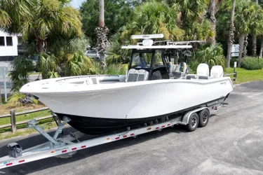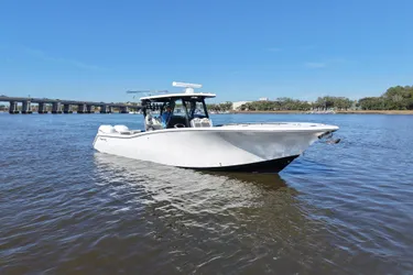 The 320 CC is filled with luxury from the yacht style helm station, backlit aluminum carbon fiber dash panel, wrap around bow seating with flip-out backrests, and so much more.