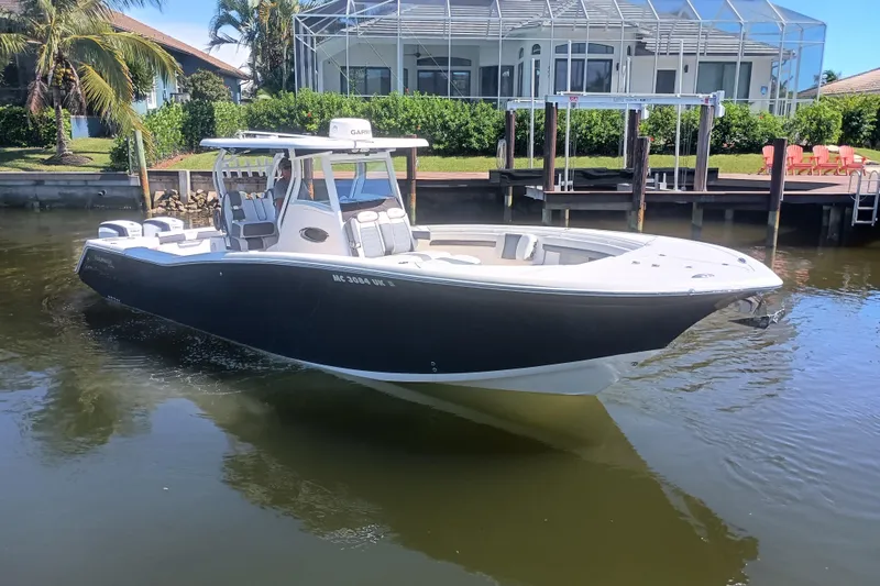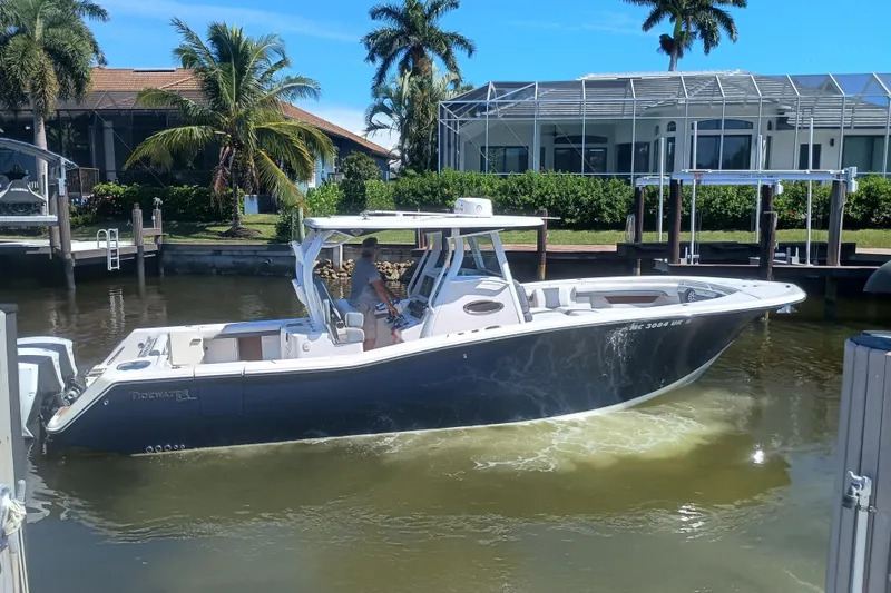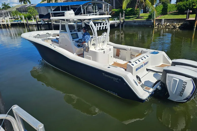 Awesome 2018 Tidewater 320 Center Console offshore fishing machine and family entertainment boat. Wide 10'4" beam gives you lots of room. One owner boat from Michigan. includes a $10,000 complete custom made cover to keep her like new. Twin 300 hp E-Techs with only 68 original hours. Trailer not included.