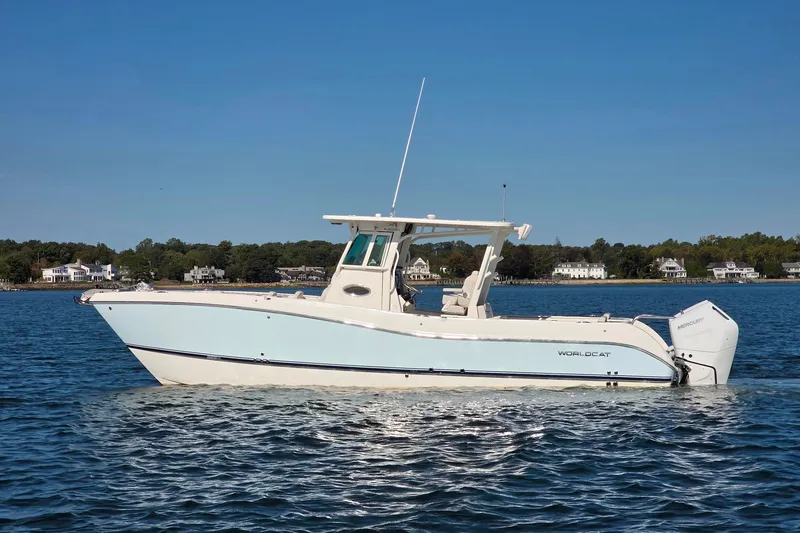 Experience offshore capability and luxury comfort in one of the most versatile dual-console catamarans on the market — the World Cat 325DC. Powered by twin Mercury 350 Verado V10s, this boat delivers a smooth, stable ride in all conditions with the confidence of catamaran performance and fuel-efficient cruising.