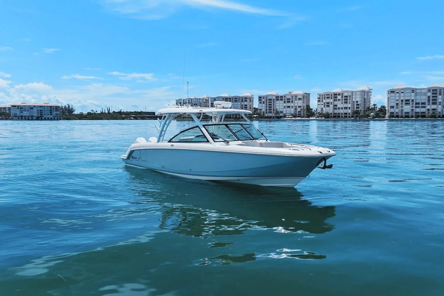 MarineMax Yachts and MarineMax St. Petersburg are thrilled to offer ‘Res Ipsa,’ a pristine 2020 Boston Whaler 320 Vantage with only 125 hours of use. Freshly serviced, meticulously detailed, and backed by an extended warranty through February 16, 2026, this boat is equipped with twin Mercury 300HP V8 Outboards and an array of premium options for an exceptional boating experience.