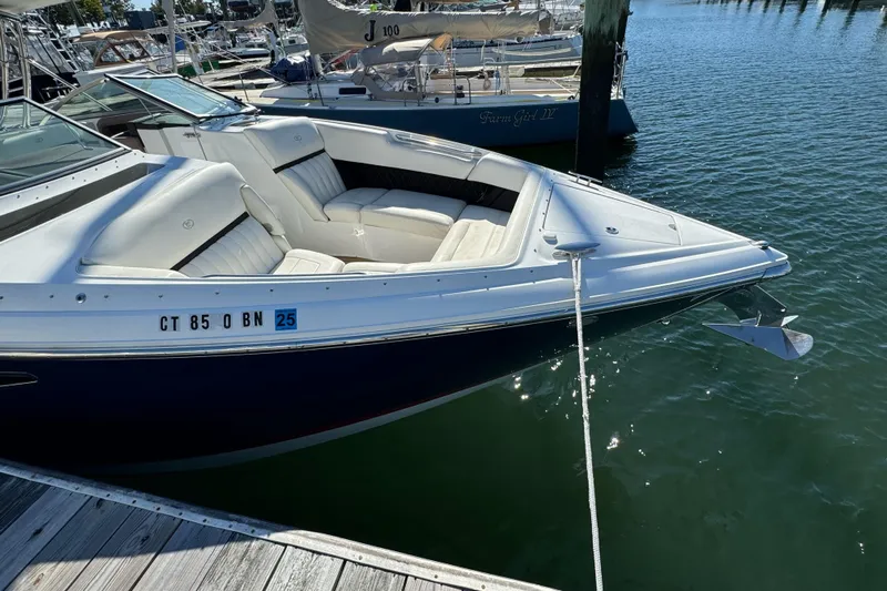 Powered by twin MerCruiser Mag 8.2's with 385hp each and Bravo 3 drives, this 34' boat will get up and move at an impressive pace, making trips across the Sound a breeze.