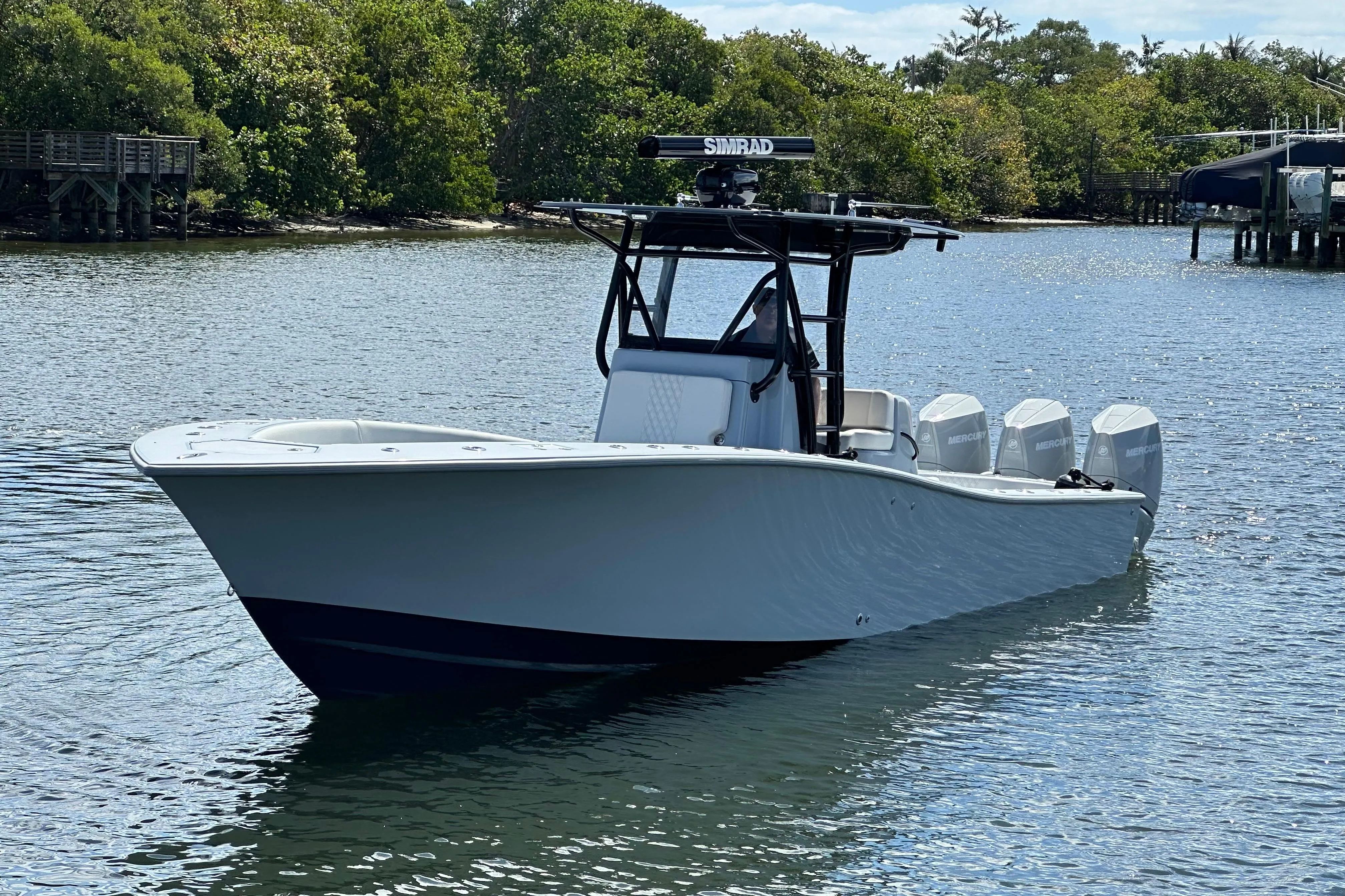 This 2019 Conch 33 is a fully equipped, lift-kept offshore fishing machine, outfitted with top-tier electronics, sound, and performance upgrades. Powered with triple 2021 Mercury 300R V8s, still under factory warranty, this boat combines speed, range, and comfort for serious anglers and family cruisers alike.