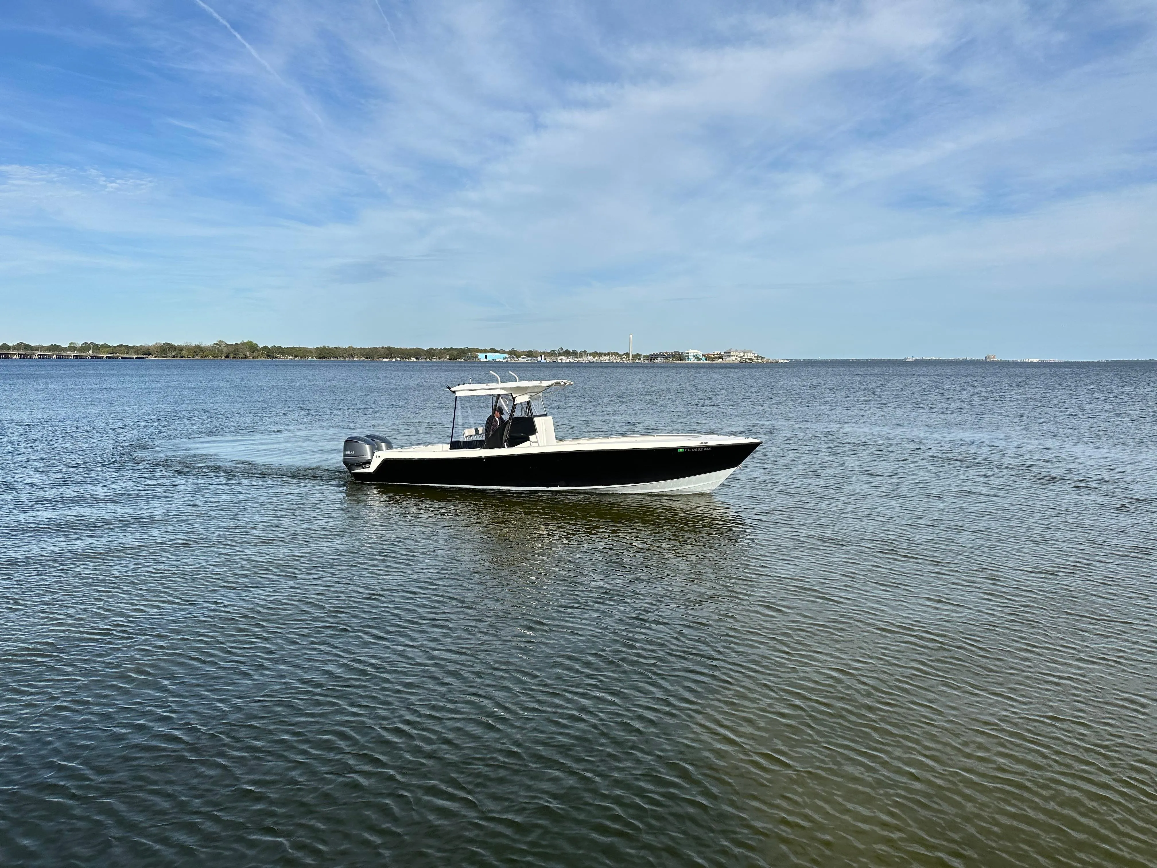 A proven tournament winner, the Contender 31 Open is a brawny, top-quality fisherman whose meticulous finish and high-performance capabilities placed her in the forefront of large center console fishing machines. The high-tech hull is vacuum bagged and cored above the waterline with wide reverse chines and two lifting strakes per side to provide a dry ride. A single-level cockpit makes the Contender an easier boat to move around than those center consoles with larger consoles. Features include an integrated dive platform, two 40-gallon LiveWell's, transom door, deluxe leaning post with rod holders, in-deck fish boxes (two fully lined 400-qt. boxes forward, two 225-qt. boxes aft), recessed bow rails, washdowns, gunnel rod holders, recessed trim tabs, walk-in console, cockpit bolsters and an anchor locker. Rigged for fishing, this boat is ready to go.