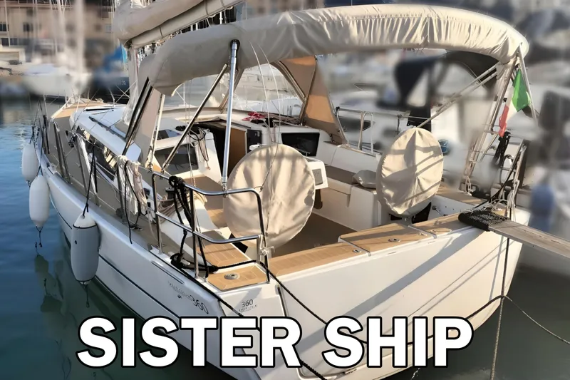2020 Dufour Yachts 360, in excellent condition, available for viewing in Liguria. 2 cabin + 1 bathroom version, oak interior. 29 HP Sail-drive engine supplement, Raymarine i70s navigation station in the port side cockpit, Raymarine Evolution autopilot with Lewmar rotary motor and P70S control instrument, AXIOM 9" GPS in the central outdoor table, Ray50 DSC VHF, AR T40 winch for mainsail, Genoa, Gennaker (including German mainsail sheet), Gennaker equipment with fixed bowsprit, Additional large opening porthole in aft cabin (left side of cockpit), Gas plate, Cockpit sink, Stainless steel bow protection, Chinè coloured bimini, Anchor with chain and rope, 6 fenders, 3 mooring ropes.