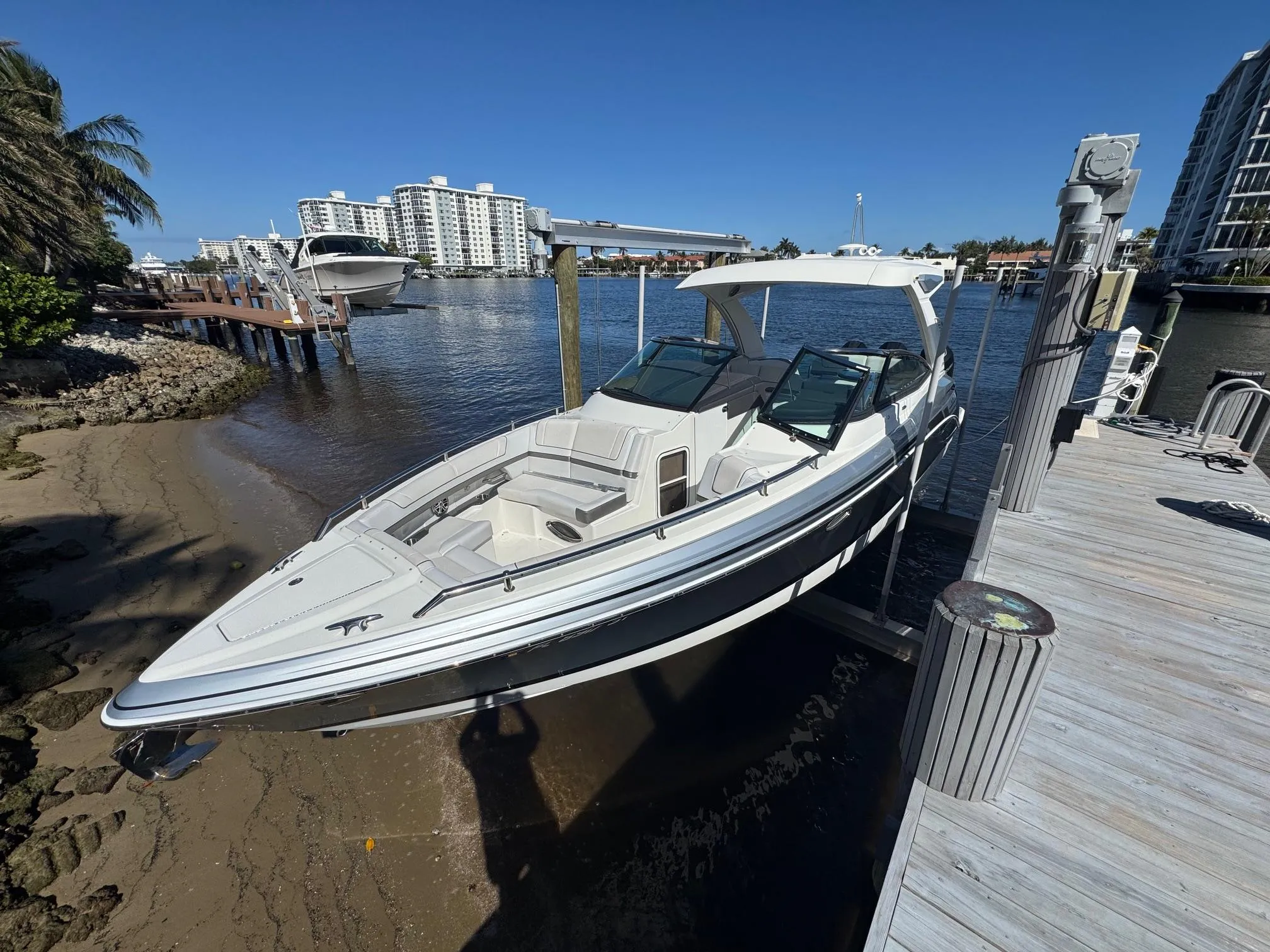 Loaded with Upgrades:  Generator + A/C, Joystick Control, Raymarine AXIOM Electronics, Retractable Sun Roof in Hard Top, Electronic Sun Shade (Aft), JL Audio Sound System, Underwater Lights + Much More!!