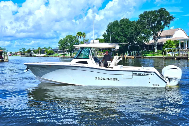This isn't just a boat-it's offshore muscle with a luxury side. The 2022 Grady-White Canyon 336, Triple 300 Yamahas. Only 292 hours. Serious fishing gear - 45 -gal livewell, triple insulated fish boxes, rod holders everywhere. Comfort for the crew - fold away seating, killer sound system, blue LED cockpit glow. Grady-White build - tough, sleek, and ready to run. She's fast, she's loaded, she's ready.