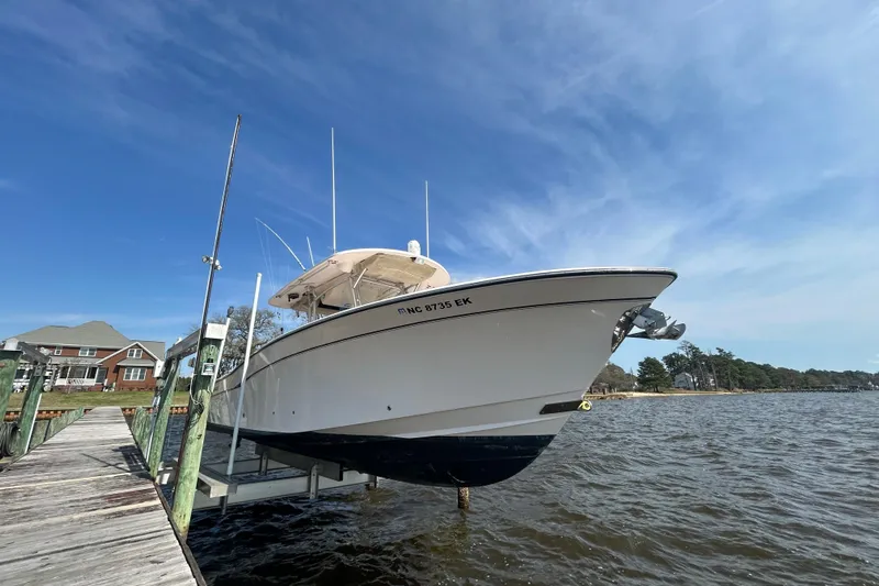 Introducing the 2008 Grady-White Canyon 336, a remarkable saltwater fishing vessel that combines performance and comfort. With an overall length of 33 feet, this boat is designed for serious anglers and leisure seekers alike. The hull, crafted from durable fiberglass and featuring the innovative Sea-V2(TM) shape, ensures a smooth ride even in challenging waters. Powered by twin Yamaha F350 outboard engines, each delivering an impressive 350 horsepower, this boat is equipped for exhilarating adventures. With stainless steel 3-blade propellers, it promises reliability and efficiency on the water. The Canyon 336 includes an electric windlass, enhancing convenience during anchoring. Accommodations feature a well-appointed head, ensuring comfort for all aboard. This used model has been meticulously maintained, making it a fantastic choice for those looking to enjoy the best of saltwater fishing and cruising. Experience the thrill of the open water with this exceptional vessel.