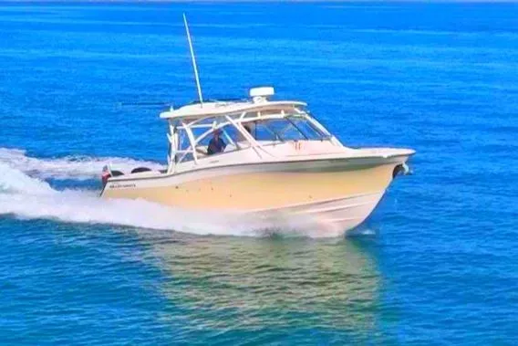 Specifications: • Make: Grady-White • Model: 335 Freedom • Year: 2013 • Length: 33’ 6” • Beam: 11’ 7” • Draft: 26” (without engines) • Weight: ~ 11,900 lbs (dry) • Fuel Capacity: 293 gallons Engines: • Engine Type: Twin Yamaha F350 4-Stroke Outboards • Engine Hours: 513hrs • Fuel Type: Gasoline Features: • Spacious dual-console layout with ample seating • Electric sun shades, hardtop with outriggers • Hardtop with integrated rod holders and storage • 4kw Fisher Panda generator - diesel • Bow thruster • Bennett trim tabs • Underwater lights • Wide-open cockpit with insulated fish boxes and livewell • Electric grill and wet bar • Deluxe helm seating with electronic adjustments • Private head compartment with sink and shower • Foldaway transom seating for added versatility • Swim platform with integrated ladder • Garmin electronics package • Fusion stereo system with speakers throughout • Air conditioning in helm area and cabin SEND AN OFFER!!
