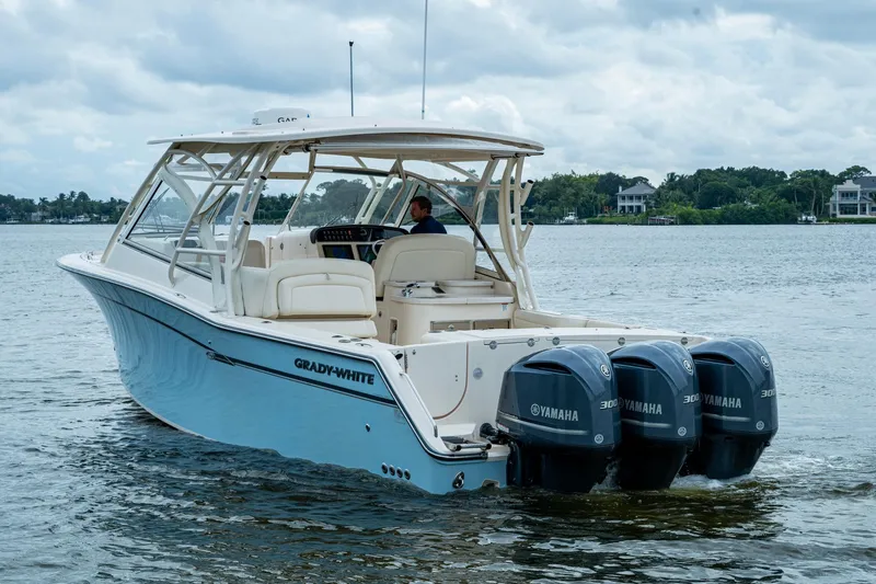 Her preferred triple Yamaha F300's give you the reliability and performance over the Twin 350 engine package. Dual Garmin 12" plotters, autopilot, radar and a fusion stereo with all JL Audio speakers. The vessel is loaded with Helm master controls with joystick steering, retractable sunshade, electric grill in cockpit, generator, air conditioned helm and inside console berth.