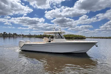 Great opportunity to owna very lightly used Grady 336 Canyon, extremely well equipped and maintained. This single owner vessel was purchased from MarineMax and serviced by us since original delivery. Low hours and warranty remaining! Trades considered against late model express style boats, under 40'