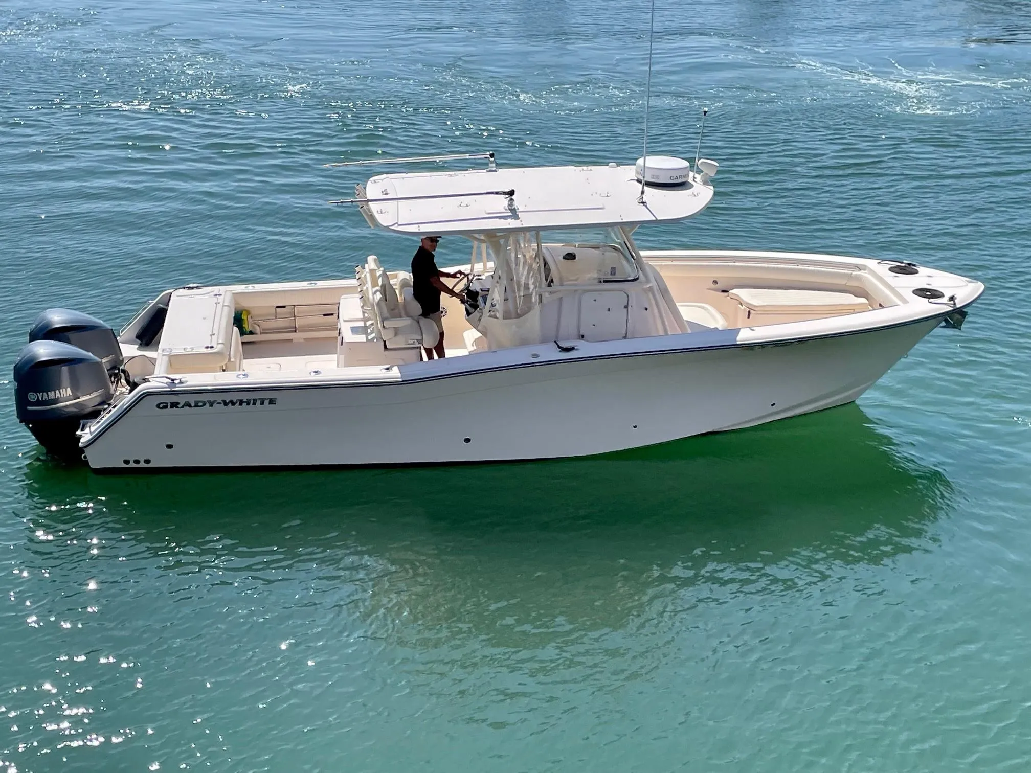 Exceptional boat! Summer 2025 - new Garmin electronics (2 displays), new transducer, new underwater lights, and full service (haulout, bottom paint, and buff/polish/wax). Twin 350 Yamaha engines serviced.