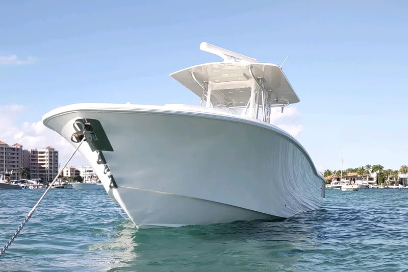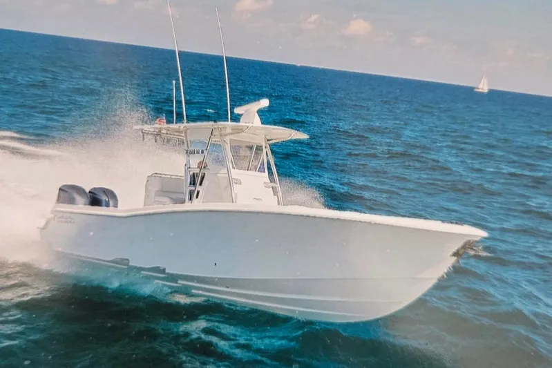 Lift kept and recently fully service ready to be enjoyed. Equipped with: 2- Garmin 12" Displays, Radar, Auto Pilot, Stereo, VHF Radio, 2- Color under water lights, Lenco Trim Tabs, T-Top underside color, 3 pc Isinglass Windshield, Factory installed Tow Eye, Anchor Windlass w/dual control, Full Sunbrella Cover. This is an incredible opportunity to own a serious offshore boat. Call or stop to see this boat.