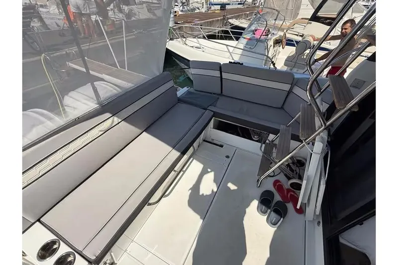 Barca straordinaria, che rompe gli schemi, combinando una carena planante progettata specificamente per la motorizzazione fuoribordo con volumi interni che solitamente si trovano solo su scafi molto più grandi, difficile trovare un altro scafo che offra tre cabine vere in 9,94 m . Sicurezza e lusso accessibile, sono le parole d'ordine.  Il Fly, caratteristico del modello 2024, garantisce un piano superiore completamente attrezzato con una seconda stazione di  guida perfettamente attrezzata Garmine, la postazione del copilota è trasformabile in una comoda zona prendisole