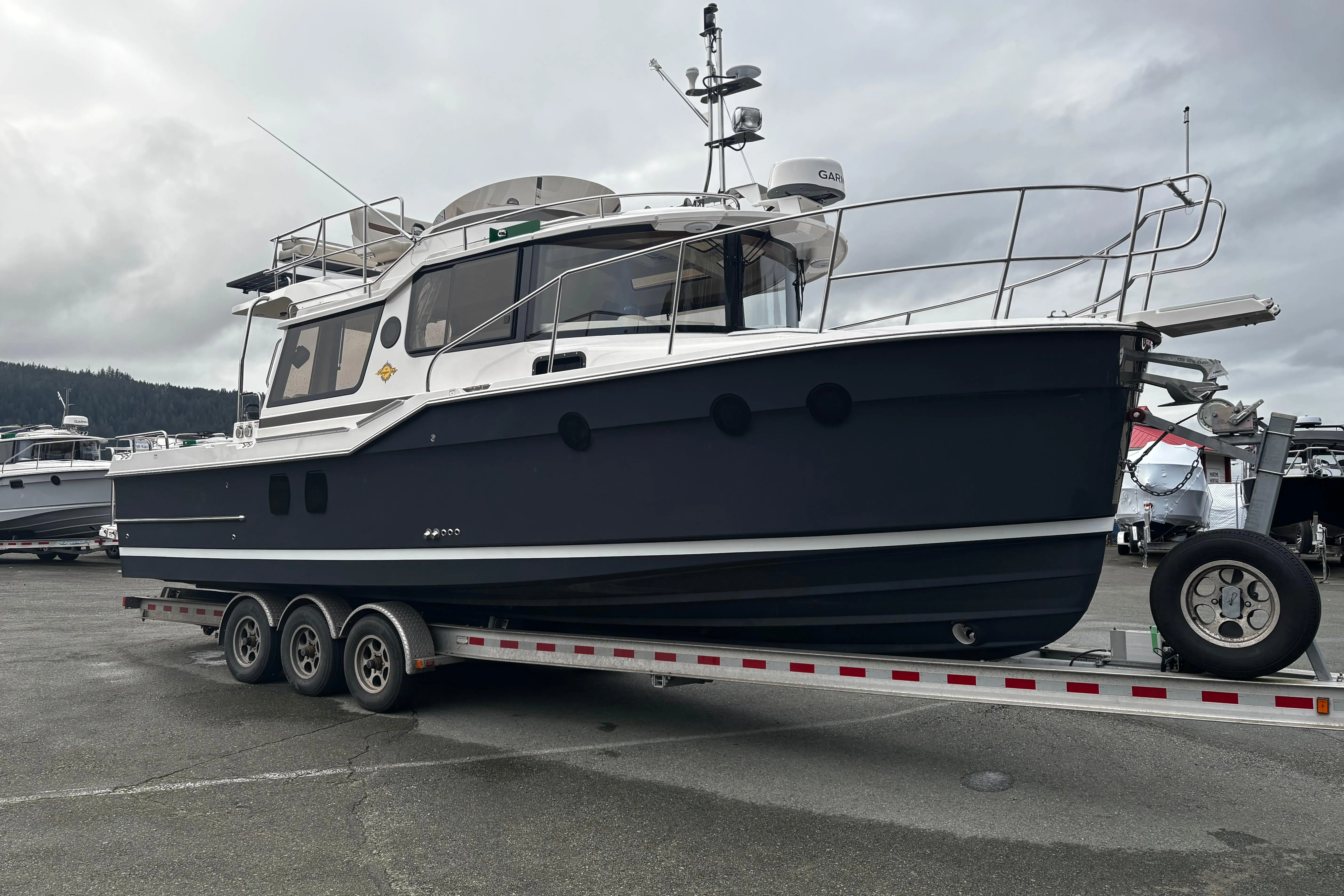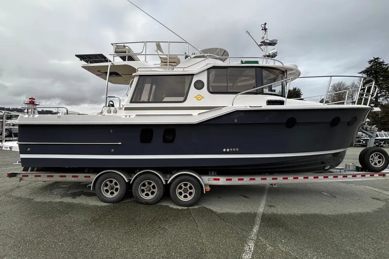 The Ranger Tugs R-29 CB can accommodate up to six adults on three separate berths, including the forward island berth with en-suite head. The R-29 is powered by a fuel efficient 320 HP Volvo Inboard Diesel engine that is located completely outside of the cabin for quiet cruising. Standard stern and bow thrusters with wireless remote make docking exceptionally easy.