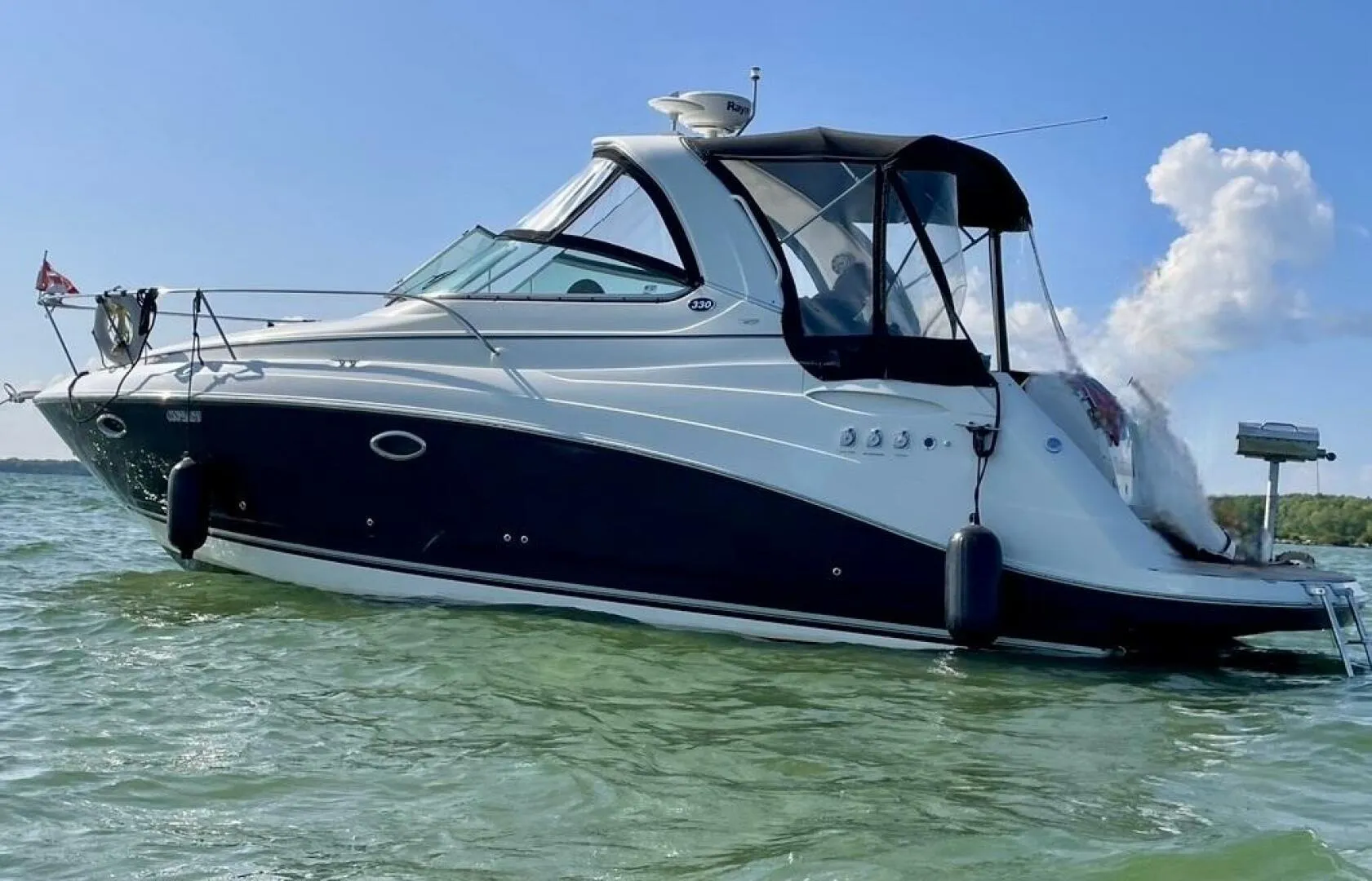 TWIN VOLVO PENTA 5.7L Gi ENGINES W/ ONLY 493 HOURS - LEWMAR BOW THRUSTER - LENCO TRIM TABS W/ LED INDICATORS - LEWMAR WINDLASS - KOHLER GENERATOR - RAYMARINE GPS - RAYMARINE RADAR - CABIN AIR CONDITIONING & HEATING - FULL CANVAS ENCLOSURE W/ SCREENS - COCKPIT WET-BAR W/ FRIDGE & ICE-MAKER +++
