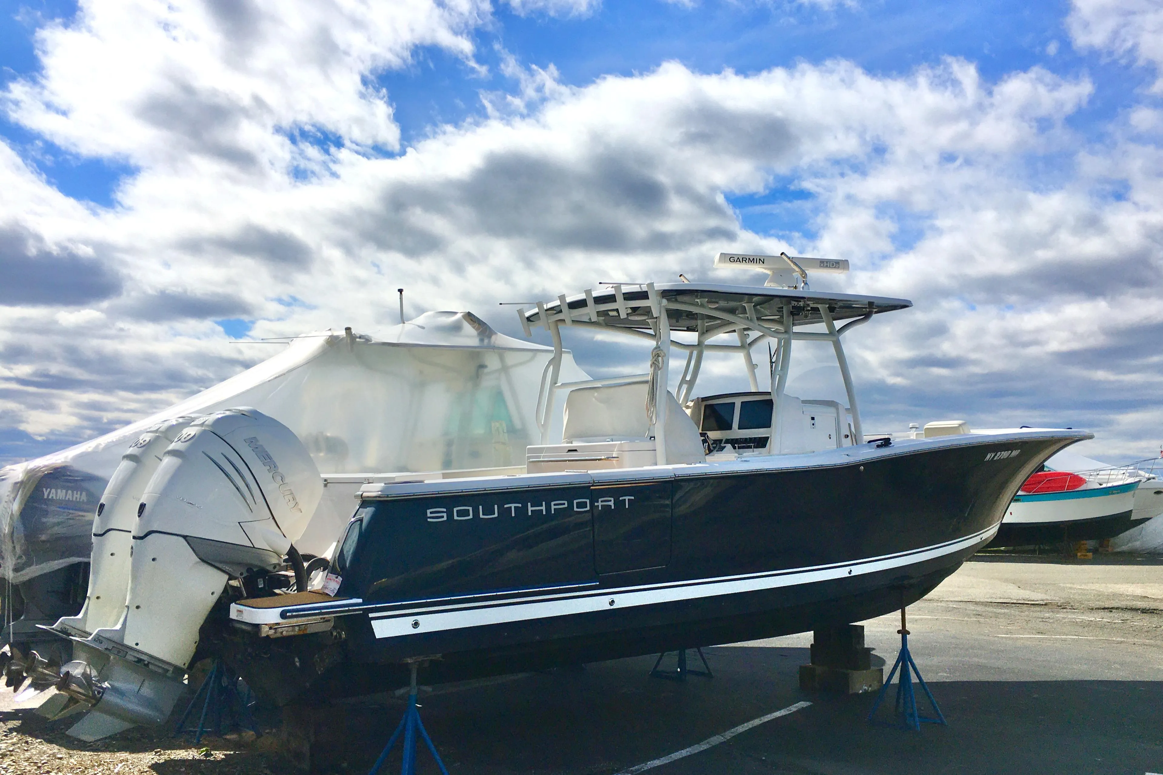 The 2020 Southport 33 Powered with Twin Mercury 400 Verados offers the perfect balance of range, speed, and comfort for both family cruising and serious offshore fishing. Outfitted with Garmin GPS & Radar, windlass, marine head, Zip Wake trim tabs, bow table, and a transom fold-down seat, this vessel is fully equipped for any adventure. Additional highlights include a bow thruster, cockpit sink, fresh & saltwater washdown, and protective covers for the bow, forward console, and helm seating. With a replacement value of $580,000, this Southport 33 is a must-see—don’t miss this one!