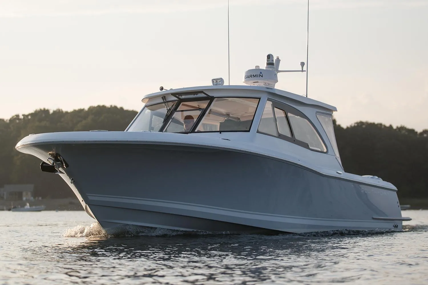 The Southport 33 Dual Console is designed on the proven platform of the Southport 33 with the added amenities for the owner whose focus is family cruising and entertainment. The DC remains true to the fishing DNA heritage of Southport and she delivers the exceptionally dry, safe and economical performance of much larger cruisers. Enjoy a day of relaxing, swimming viewing the sunset, or make a longer trip to a favorite island with no worries about the ride home, even when the ocean turns angry.