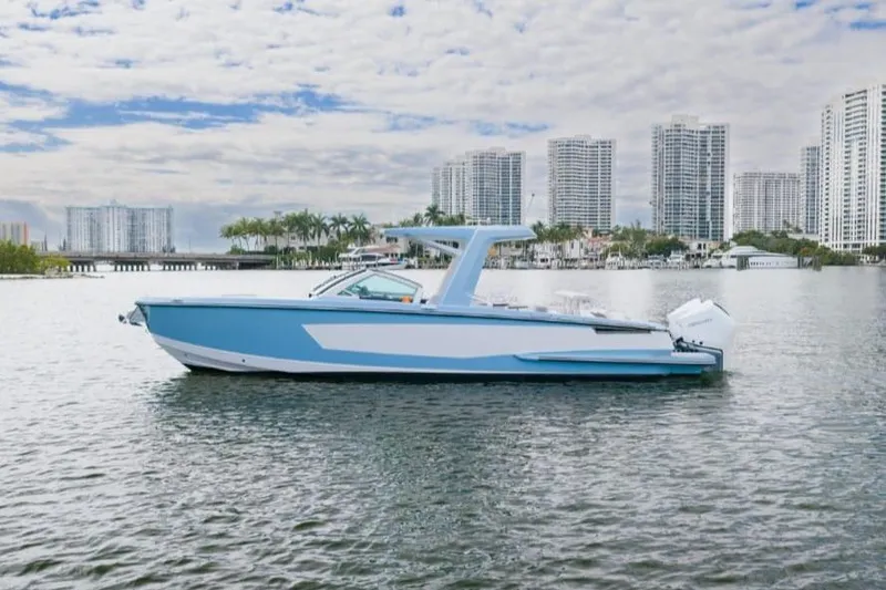 The AV32 OB is Aviara’s flagship outboard model, showcasing sleek, modern styling paired with an intelligently designed layout. Its deep-V hull provides confident handling and a smooth ride, while the spacious cockpit and upscale finishes create a true luxury day-boat environment.