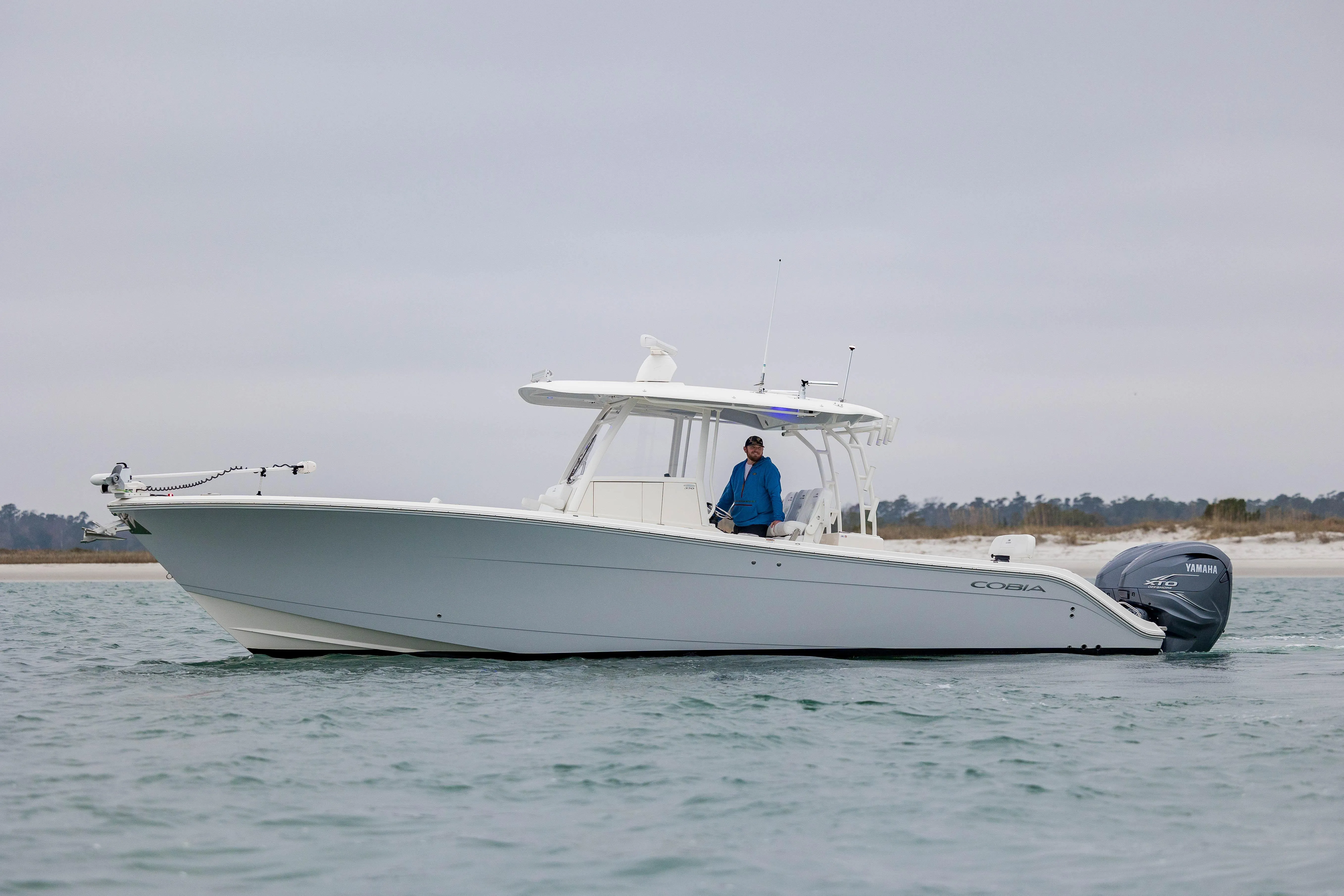 The 350 fishes hard and plays easy with a rare combination of high style and ultra-performance. A double-stepped hull makes getting to the fishing grounds fast and fuel efficient while elegant topside amenities bathe you in style and comfort. Tournament capable fishing features include dual 42-gallon bait tanks, 2 huge in-floor fishboxes that pump overboard, a full tackle station and bait prep area, plus a hidden below deck rod locker that’s lockable. With an 11’2” beam and a clean, wide open cockpit, there’s plenty of room for a group of anglers to all fish at once with plenty of space to spare or to chase around a hot fish at boatside. An inward opening side door makes pulling aboard a big tuna or dropping in a diver safe and easy.