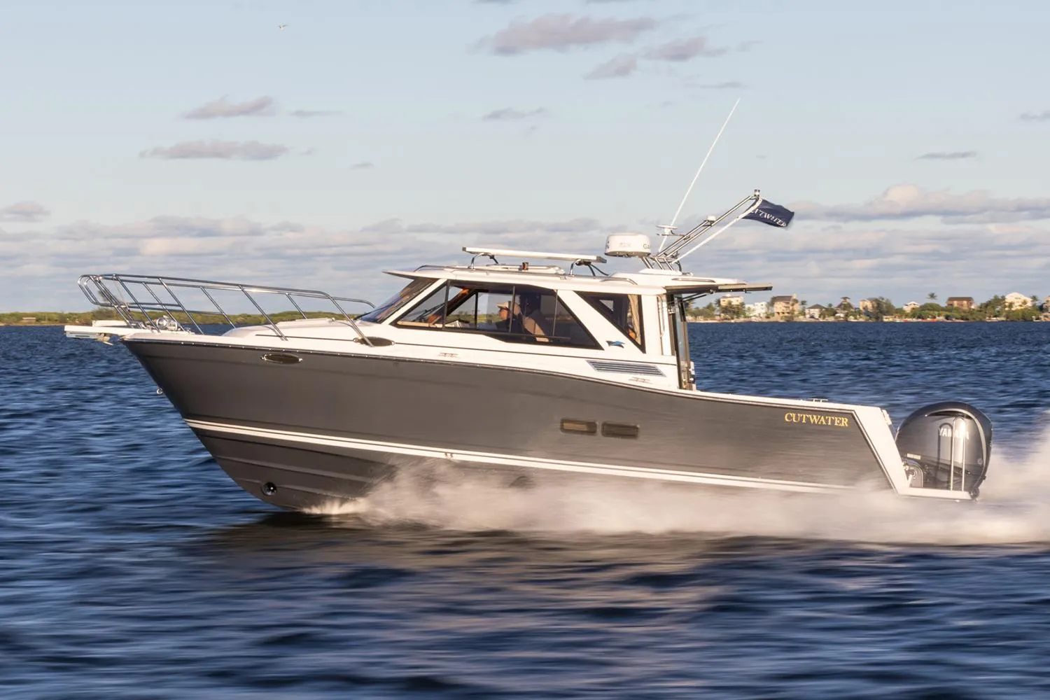 True to the Do-It-All nature of Cutwater Boats, the C-288 C is loaded with premium features as standard equipment, providing unsurpassed versatility. The contemporary Downeast design is set to turn heads wherever she'll roam, and avid cruisers will appreciate the abundant power produced by the twin counter-rotating Yamaha F250 outboards. The C-288’s advanced hull design delivers the perfect blend of performance, comfort and efficiency thanks to the double-stepped deep-V hull, Laminar Flow Interrupters and a stout 10’ beam. The generous beam maximizes cabin area and on-water stability while remaining trailerable.