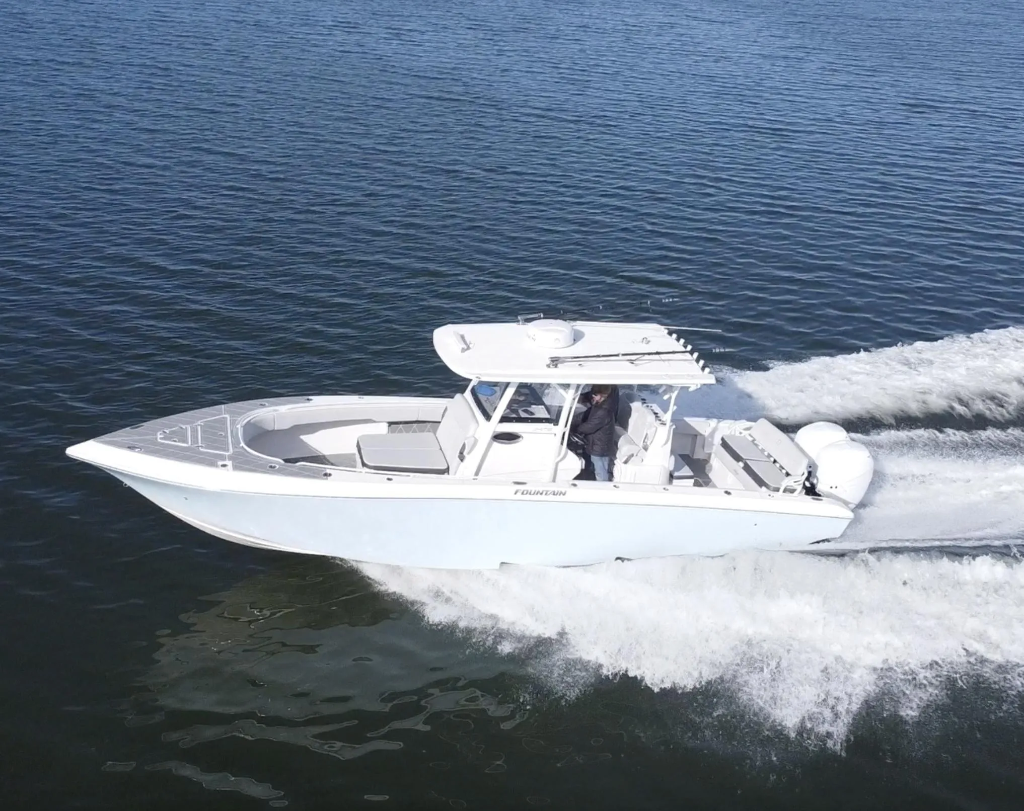 Performance, quality, and world class fishing features come together like never before in the amazing new Fountain 34 Tournament Edition. An engineering marvel, the 34TE offers 360-degree movement while fighting fish, thick coaming panels, and easy access to a plethora of rod holders. Even if you max out, the day's catch easily stows in five insulated in-floor lockers and a huge 380 quart coffin box cooler. Fountain's innovative tackle center rates best-in-class. At speed, Fountain's twin step Positive Lift bottom design is unmatched when it comes to low speed stability, fuel efficiency and big water ride control.