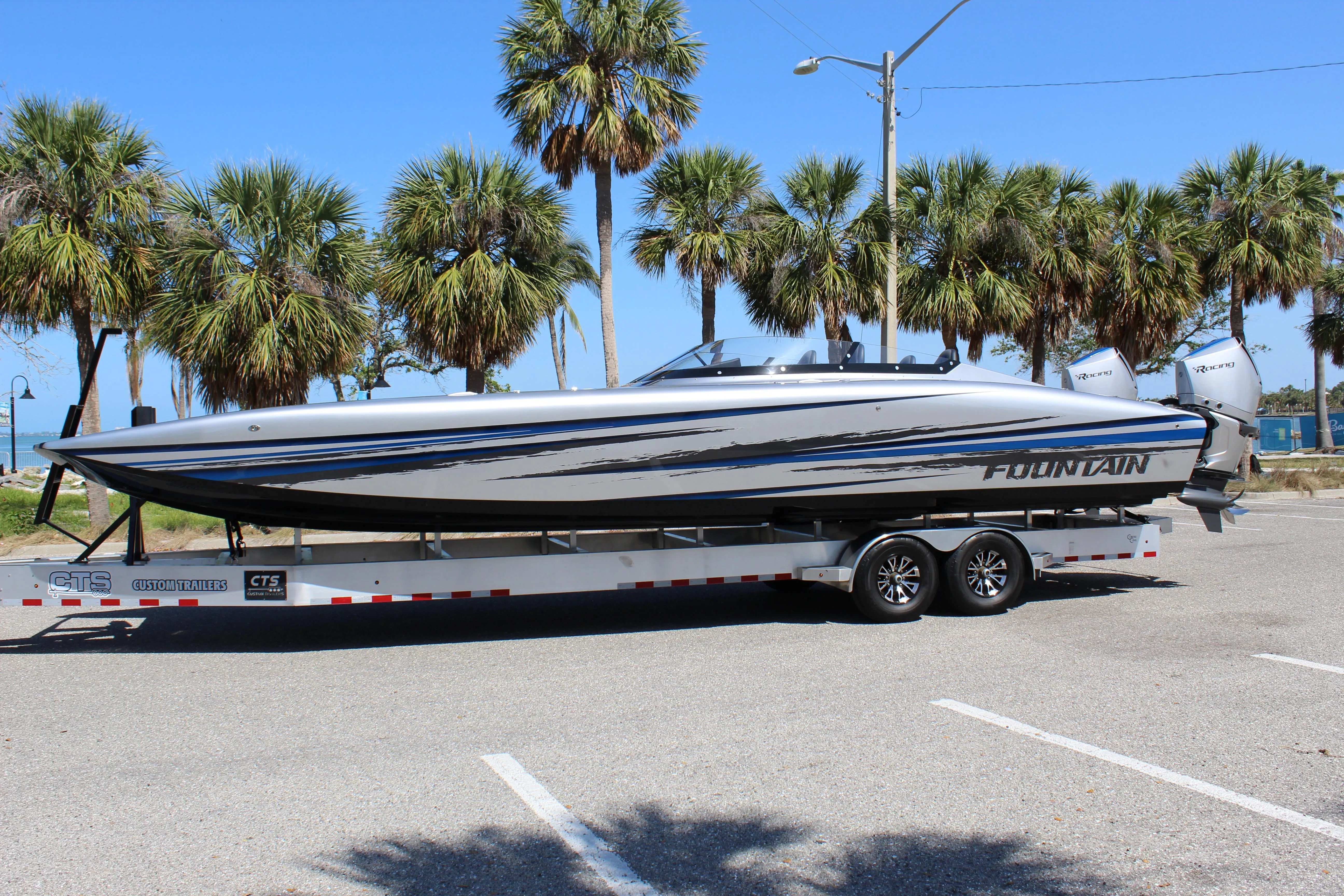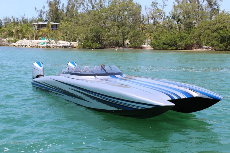 In stock and ready for its new owner. This new 2025 Fountain 34 Thunder Cat. Stunning painted graphics and interior package. Powered with the new Mercury Racing 500R's.Fast and agile. Awesome lines with its rolled and finished gunnels. Trades considered. Other units on order with different power plants and price point. Fountain's exclusive Thunder Cat dealer.