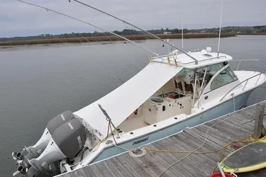 This is a very nice updated 2006 Pursuit 345 Drummond. It is powered by twin 2023 Suzuki 300 HP engines that only have 195 hours on them since new. They have the remaining 5 year factory warranty.