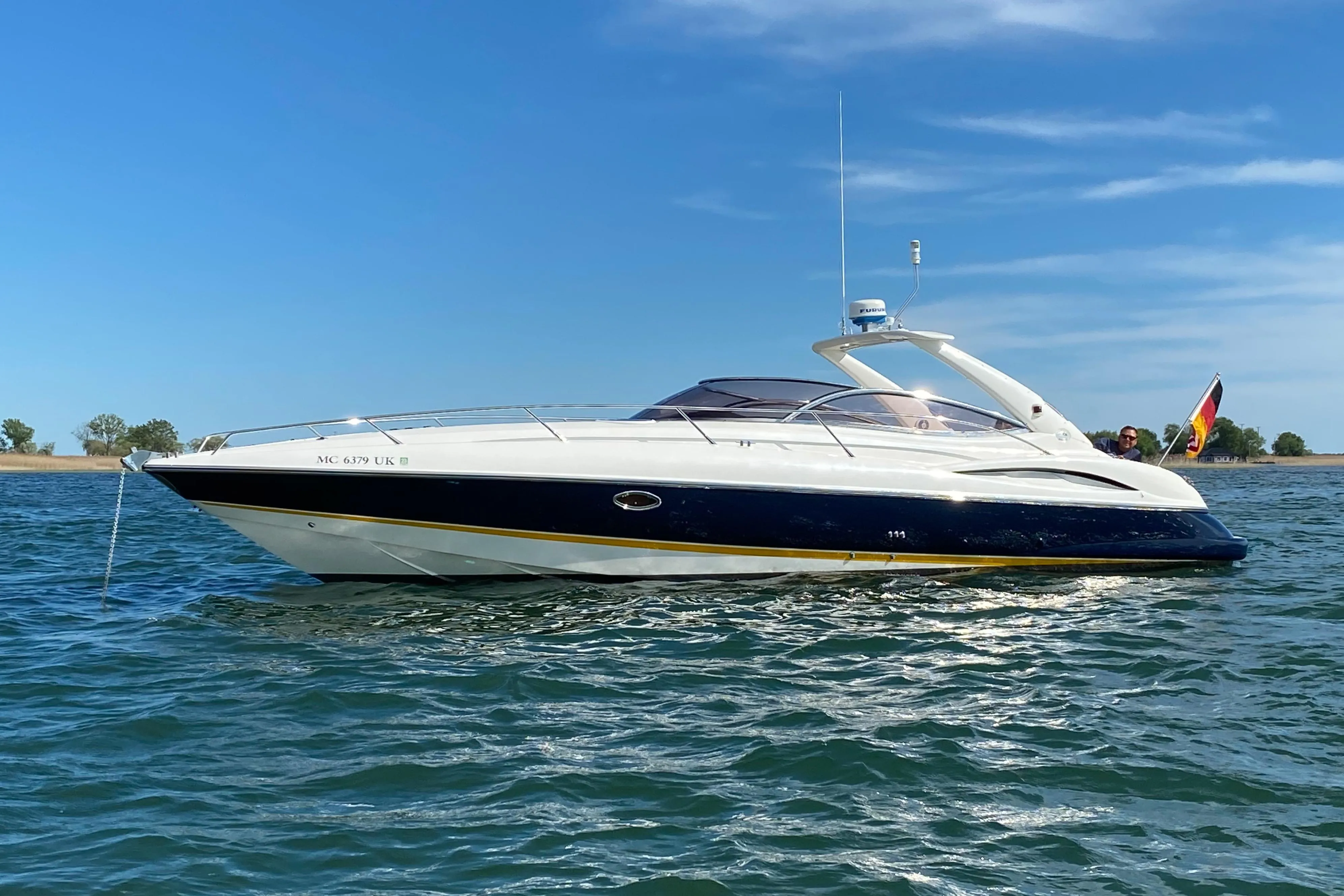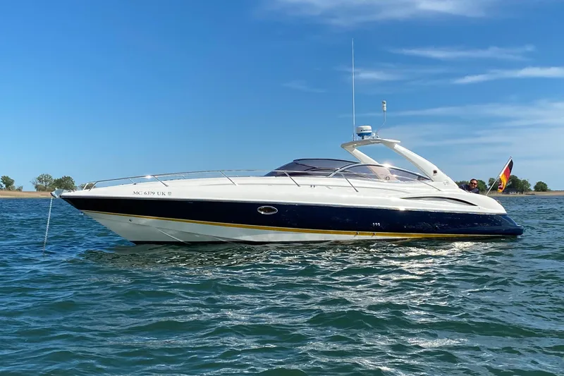 One of the most successful high-testosterone boats ever built by Sunseeker International (160 were sold, mostly in the U.K.), the slender deep-V hull of the Superhawk 34 promises the all-round performance of her racing heritage. The distinctive Superhawk lines are striking from all angles, an enormous styling compliment considering that she was introduced back in the late 1990s. Anyone considering the purchase of a 34 Superhawk does so in the knowledge that these boats are all about performance and open-air sex appeal. While the posh cockpit will accommodate eight in great comfort, the well-finished interior is short on elbow space as well as headroom. The small head is nearly worthless for showers; the galley is fine as long as you stick to sandwiches; and reaching the Superhawk’s forward queen berth means climbing over the wraparound settee. On deck, there's a wet bar, swim shower, bathing platform, sun-lounger, and bow bathing cushions. A power engine hatch reveals a neat-but-tight engine room. That said, the Superhawk 34 is a terrific open-water performer that still outguns most competitors.