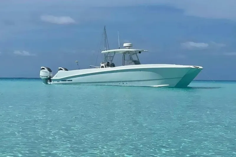 The Twin Vee 340 GFX is known for being an offshore animal — a wide-beam catamaran that runs fast, fishes hard, and stays unbelievably stable in the slop. This 2023 example is the full package: freshly serviced, heavily upgraded, fully warrantied, and rigged to dominate long-range days offshore with 382 gallons of fuel and triple livewells.