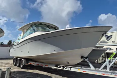 Introducing the Grady-White Freedom 345, a stunning dual console boat from 2026, designed for both performance and comfort. With an impressive overall length of 33.5 feet, this vessel boasts a robust fiberglass hull featuring the innovative Sea-V2(TM) shape, ensuring stability and smooth navigation through various waters. Equipped with four outboard engines powered by gasoline, the Freedom 345 promises exhilarating speed and reliability for your adventures. The thoughtful design includes ample space for relaxation and entertainment, making it perfect for family outings or social gatherings on the water. This used model showcases the renowned craftsmanship of Grady-White, ensuring durability and a premium boating experience. Whether you're cruising along the coastline or enjoying a day of fishing, the Freedom 345 offers a blend of style, performance, and versatility that is sure to impress. Experience the joy of boating with this exceptional vessel.