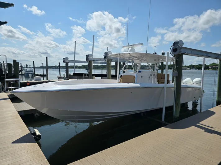 The 35 Bahama will surely impress. Super dry with an incredible ride. Loaded with great options, Full Garmin Electronics, Upgraded Release Marine Helm Chairs, and many more. Powered with triple Mercury 300 Verados.
