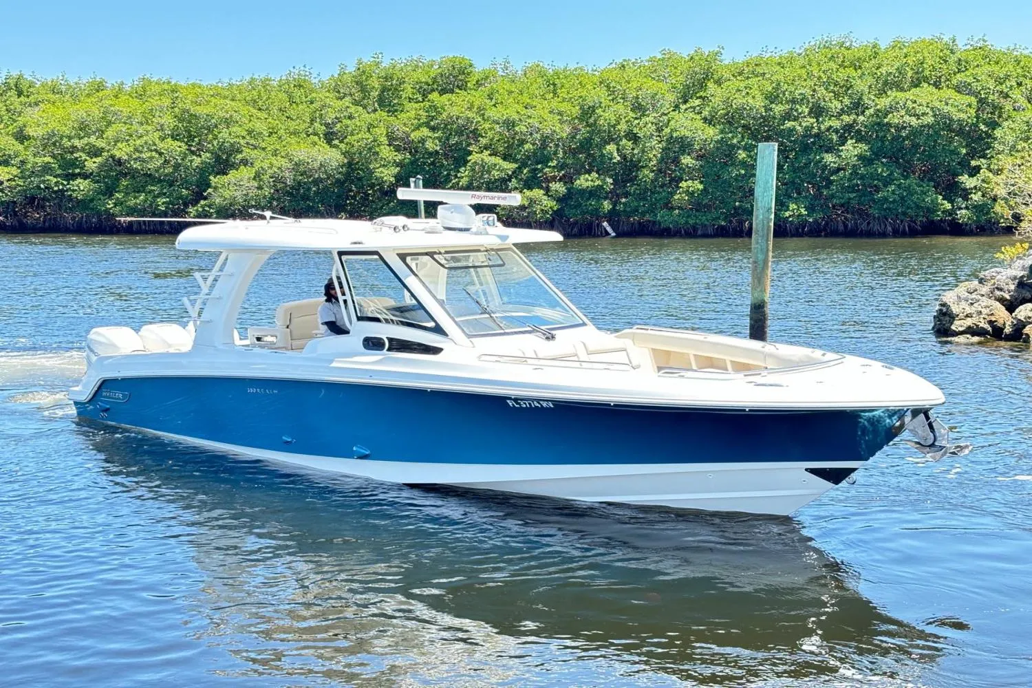 Powered by Triple Mercury Verado 350HP with Joystick. Transferable Mercury Platinum Warranty till Feb 2026.