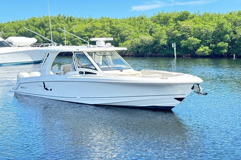 This One Owner Boston Whaler 350 Realm is a versatile, high-performance powerboat designed for both luxury and adventure. At 35 feet, it boasts twin Mercury Verado 350-hp outboard engines, providing powerful