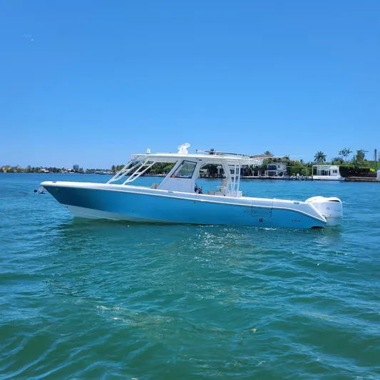 Lift-kept, low-hour, and maintained to perfection, this 2018 Everglades 355CC is a true turn-key center console that blends offshore performance with refined luxury. Powered by triple Yamaha 300s, she delivers confident handling with a cruising speed of 40 mph and a top end at just over 50 mph. This build is loaded with premium upgrades including the oversized hardtop (X Top Option), striking Metallic Tourmaline Blue hull with white engines, Optimus 360 Joystick for effortless docking, and a complete Garmin suite with dual 7616xsv displays, radar, and autopilot. Comfort and function with beige upholstery, bow bolster package, refrigerator/sink upgrade, Sirius XM audio, FLIR thermal imaging, and even an underwater camera for a live view of your catch below. Professionally cared for and optioned to impress, this 355CC is the ultimate expression of Everglades’ design and capability.