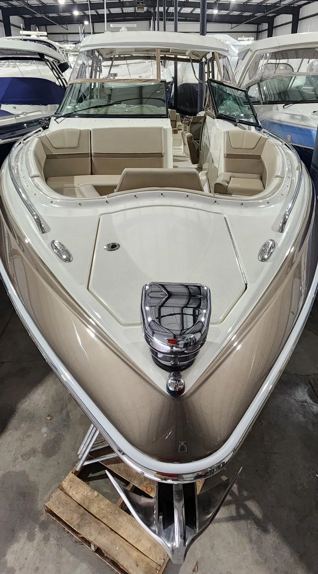 This boat is freshly detailed and ready to be splashed. A quality boat with plenty of eye appeal, the Formula 350 Crossover Bowrider (CBR) bridges the gap between a high-performance sport boat and luxury express cruiser. The 350 is an impressive product—she combines the overnight accommodations of a cruiser, the huge seating area forward of a deck boat, and the cabin accommodations of an express boat. It’s a clever combination, and the sheer size of this giant bowrider makes her the ultimate day boat.