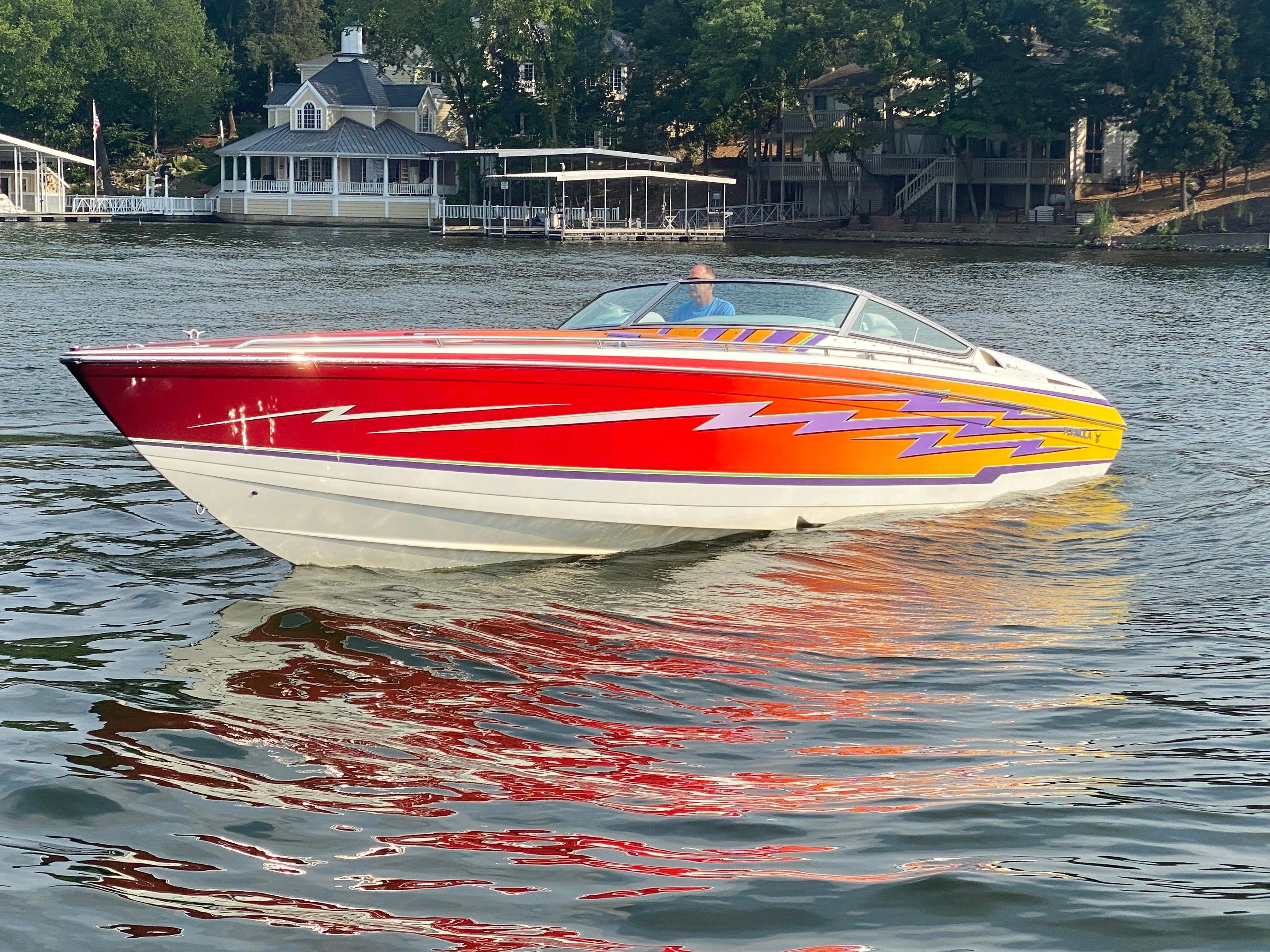 Two owner boat in excellent condition with the following features: Drive showers, Mercury Racing K-planes w/ indicators, Corsa exhaust tips, Emergency halon, Bilge blower, Shore power, Transom shower, Livorsi performance gauges & controls, Depth finder, Compass, Electric bolsters, Electric footrests, Upgraded Fusion Stereo System w/Bluetooth New Amp, Sub and Speakers, Helm Remote, Cabin fridge, Cabin fresh water sink, Enclosed head compartment w/ porta potti, Dual battery switches, Emergency battery parallel, Snap in cockpit carpet, Cockpit cover & full mooring cover.