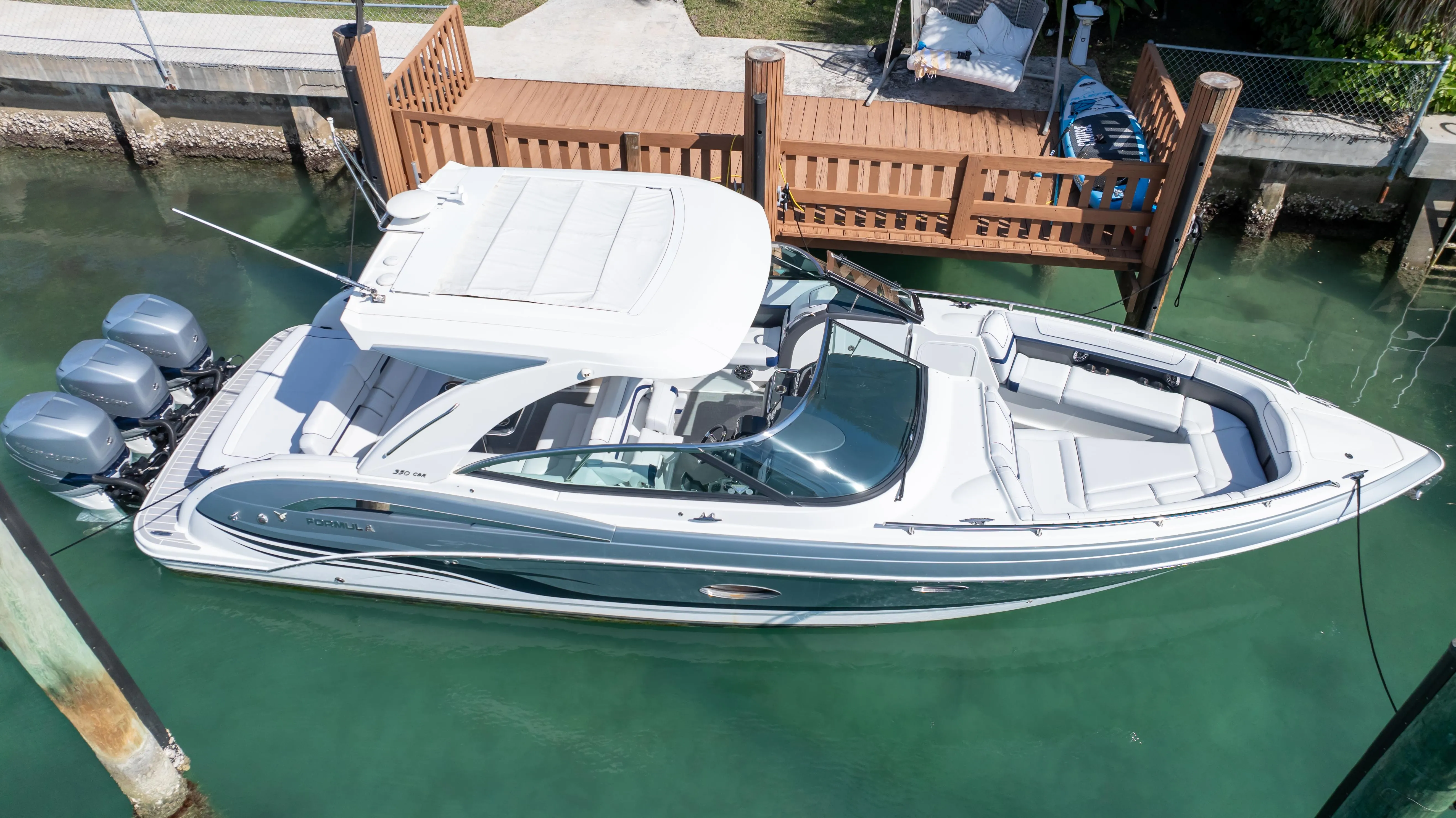 From stem to stern, everything about the Formula Crossover Bowrider series is designed to meet the needs of those looking for a large, luxurious Bowrider with comfortable overnight capabilities. This is where excellence meets sophistication, and superiority meets authenticity. The Formula 350 Crossover Bowrider is the pinnacle of this innovative combination, and is every bit the upscale sport boat in combination with Formula prestige and your personal touch. The 350 Crossover Bowrider is now available in twin sterndrive and triple outboard power.
