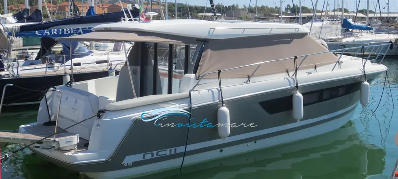 Overall measurements 11.15x3.74, sliding cockpit bench, few hours of motion, unused boat interiors. Carbarante tanks 2x360 lt.