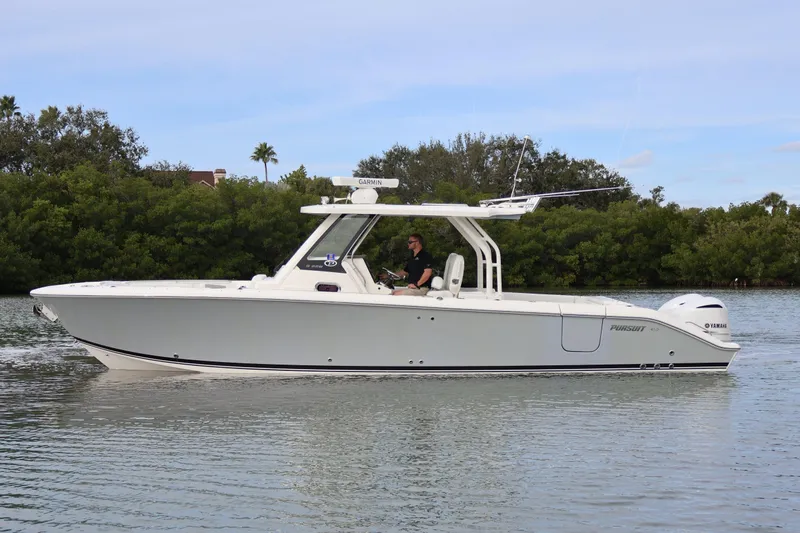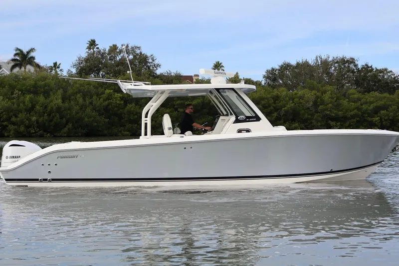 Anglers will appreciate the strategically placed rod holders, open deck layout, and Pursuit’s legendary offshore hull design—known for its soft ride, stability, and seaworthiness.