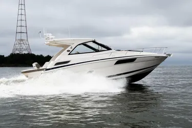 Already equipped with luxury essentials — generator, grill, underwater lighting, and Flexiteek swim platform — this 35 Sport Coupe now boasts a premium suite of upgrades, including a full Garmin electronics package, high-end Fusion audio, Pepwave 5G connectivity, and much more.
